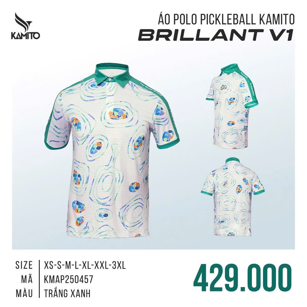 Áo Pickleball Kamito Brilliant - Trắng xanh