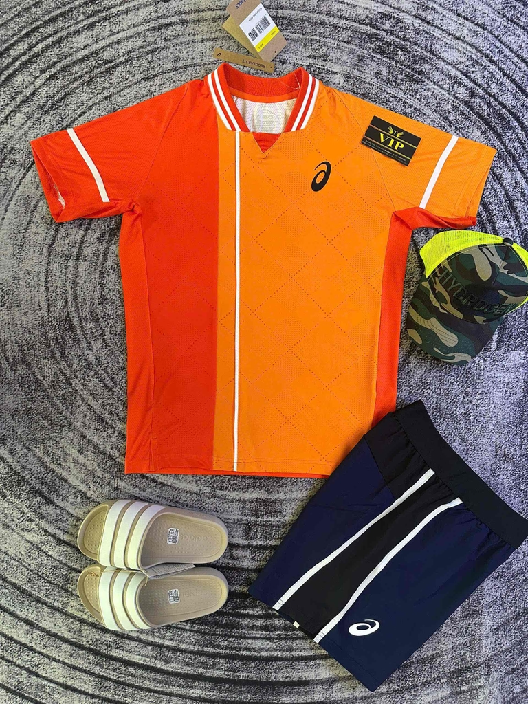 Bộ Pickleball Asics - Áo cam quần xanh