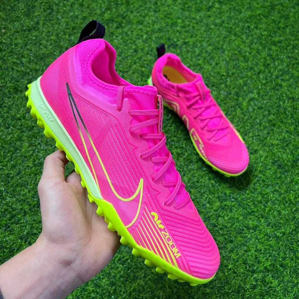 Nike Air Zoom Mercurial Vapor 15 Pro TF Luminous - Pink Blast/Volt/Gridiron là mẫu giày cao cấp dành cho sân cỏ nhân taọ 5-7 người. Nike Air Zoom Mercurial Vapor 15 Pro TF Luminous sở hữu sắc màu nổi bật "Pink Blast/Volt/Gridiron". Gam màu hồng tươi trẻ làm nền, kết hợp cùng các điểm nhấn màu volt hiện đại đặc biệt cho biểu tượng Swoosh trên thân giày và mặt đế, tạo nên vẻ đẹp độc đáo và cuốn hút, khiến cho đôi giày trở thành tâm điểm chú ý trên sân cỏ.
